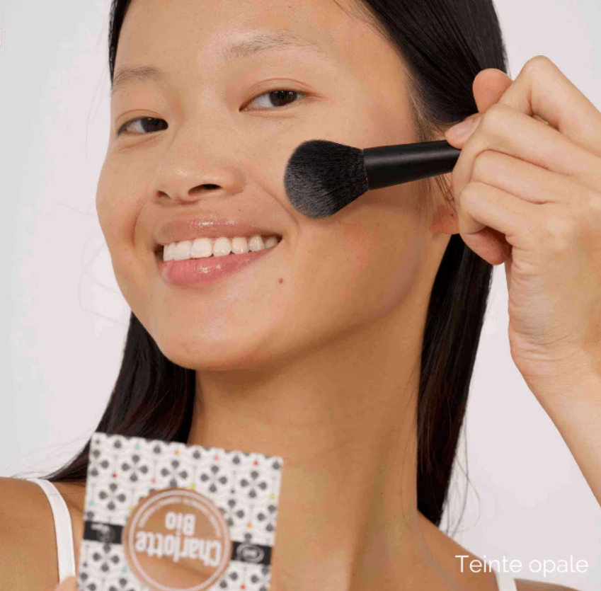 Het compacte poeder van Charlotte Bio is een natuurlijk en vegan poeder dat je teint egaliseert, matteert en natuurlijk perfectioneert. De formule bestaat uit 100% natuurlijke ingrediënten en bevat voedende botanische oliën zoals jojobaolie, sheaboter en avocado-olie. Hierdoor blijft de huid comfortabel en soepel, zonder een droog of poederig effect.