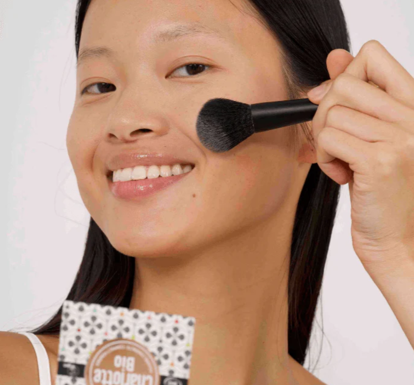 Het compact powder bevat een combinatie van natuurlijke plantaardige oliën die de huid verzorgen en beschermen. Jojoba-olie reguleert en verzacht, sheaboter voedt diep zonder te glanzen, en avocado-olie zorgt voor comfort en elasticiteit. De formule is volledig vrij van parabenen, fenoxyethanol, minerale oliën en stoffen die bekendstaan als potentiële hormoonverstoorders.