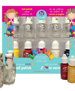 Wij begrijpen dat je soms gewoon een unieke nagellak wilt hebben om jezelf uit te drukken of een statement te maken. Met deze Suncoat Girl eco nagellak – color creation kit kan dat nu gemakkelijk, leuk en veilig. Met deze set kan je de kleuren van je dromen helemaal zelf te creëren. Deze nagellakkleuren zijn op waterbasis en afpelbaar, vrij van chemische dampen, geurloos, niet giftig en veilig. Deze kit bevat alles wat je nodig hebt voor het uitvinden van jouw unieke nagellakkleuren. Je hebt géén extra gereedschap nodig.