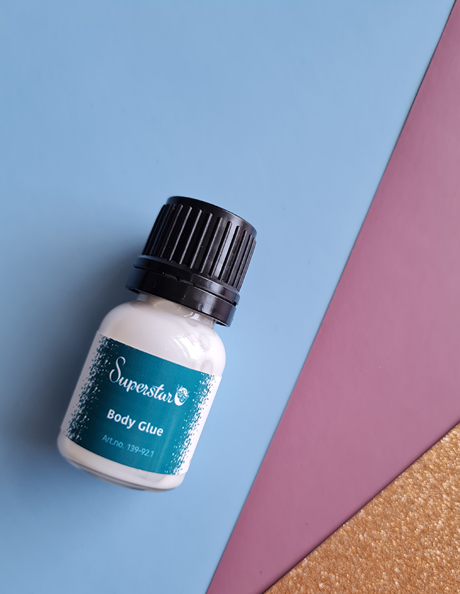 De Superstar – body glue is een uitstekende kwaliteit huidlijm ideaal voor het aanbrengen van glittertattoos. Let op, deze huidlijm is niet op natuurlijke basis.